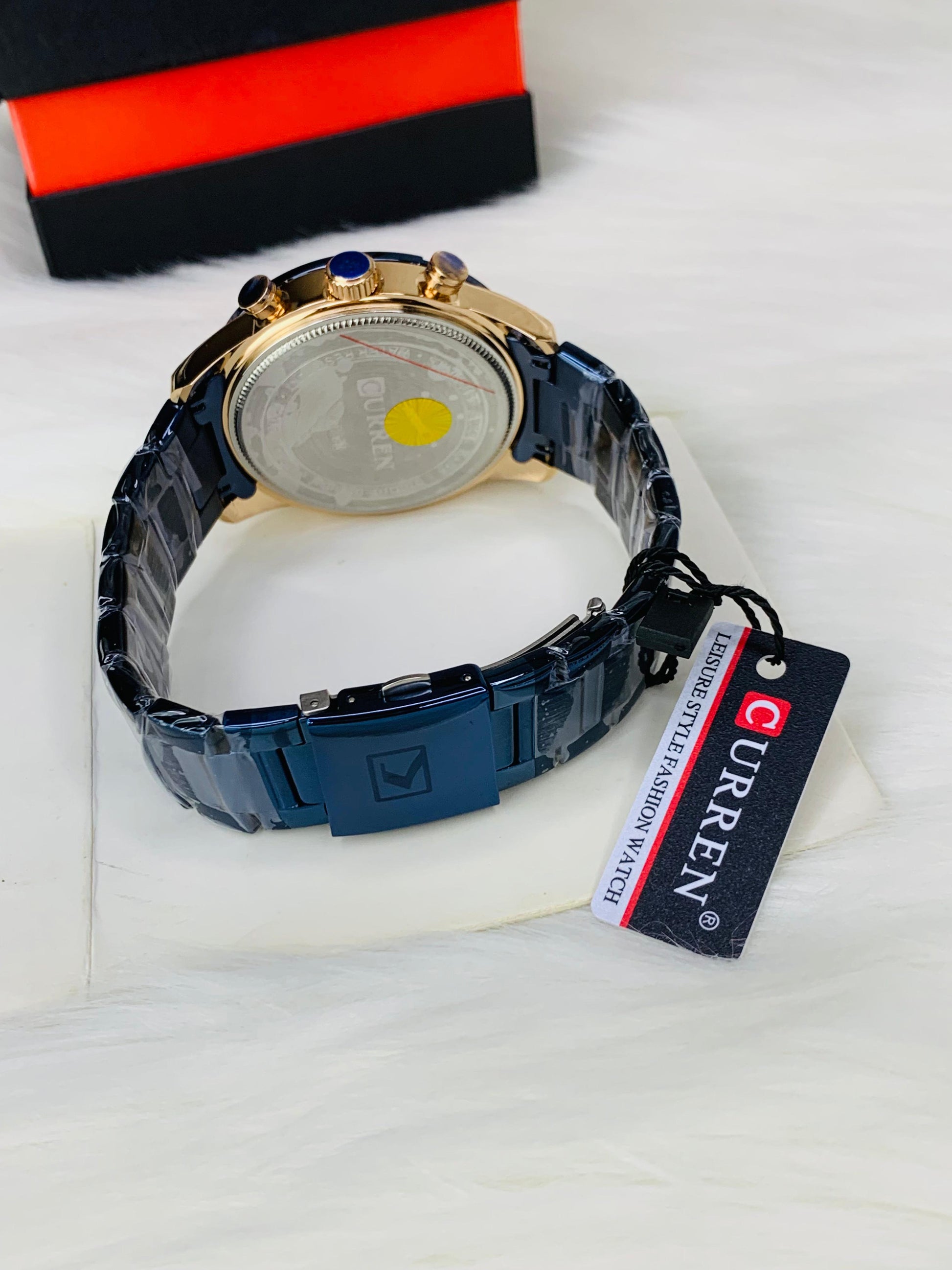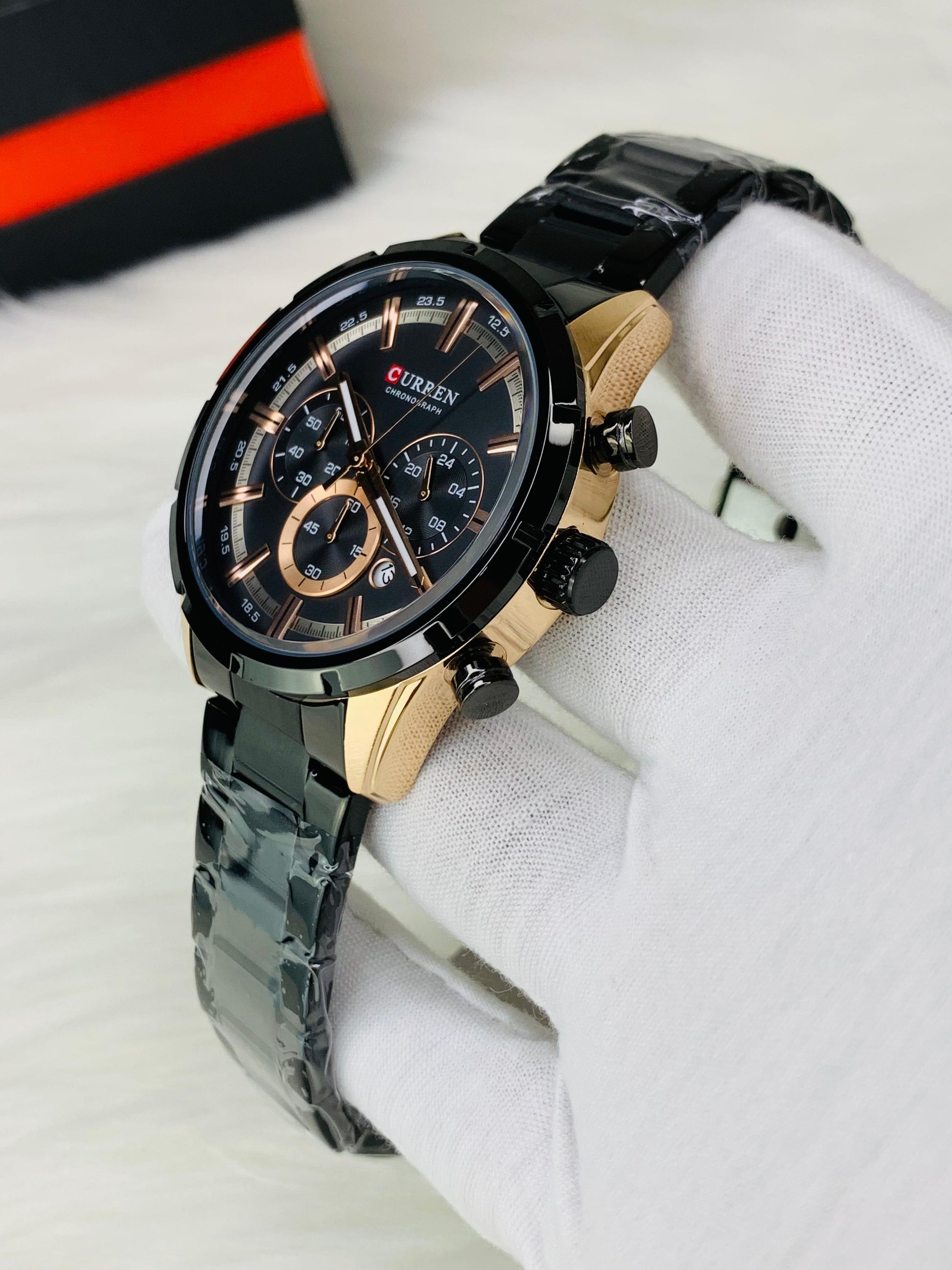 "The CURREN 8355 watch for men is a sleek and resilient choice, made of 100% stainless steel. Featuring a chronograph function, it allows for precise timekeeping, while also displaying date, time, 24-hour format, and a stopwatch. A stylish and reliable timepiece for the modern man."